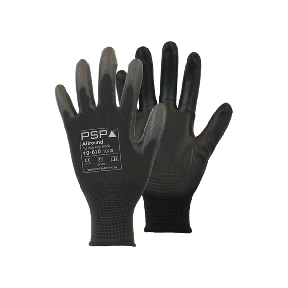 10-610 PU Zwart Werkhandschoen 12 Paar maat 9/L