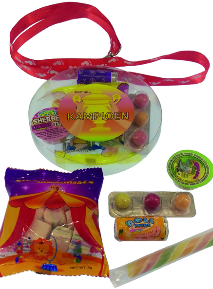Medaille verpakt snoep met keycord
